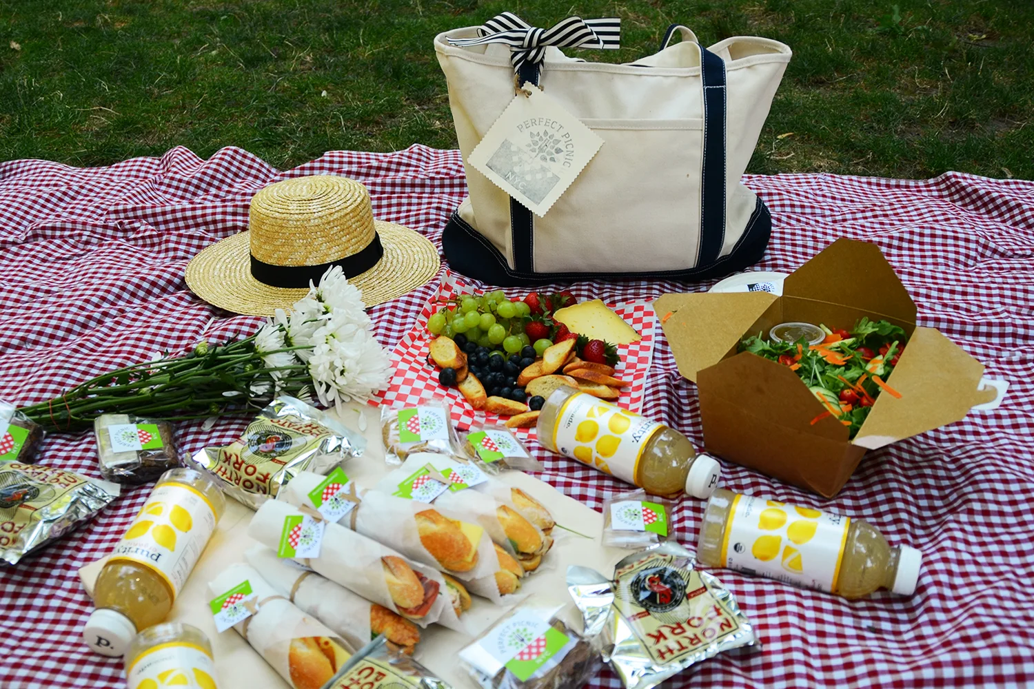 My friends and I wanted to find something unique and fun to do in this tough summer heat. We knew we wanted to be outside and around food (obviously) so we decided to give Perfect Picnic NYC a shot. Picnics are always a good idea, but sometimes hard to execute (who has a picnic blanket and basket these days? who wants to lug them around the city? and what type of food do we bring?). Perfect Picnic took care of it all- they delivered the blanket, bag full of drinks, baguettinis, chips, fruit, cheese, lemonade, salad, cookies, and brownies. What more could we want? The best part is, we only had to bring ourselves.